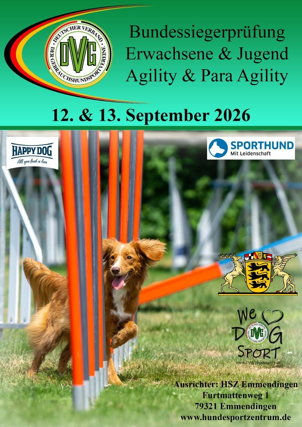 Das HSZE veranstaltet die DVG BSP/BJSP Agility und PARA-Agility am 12./13.09.2026