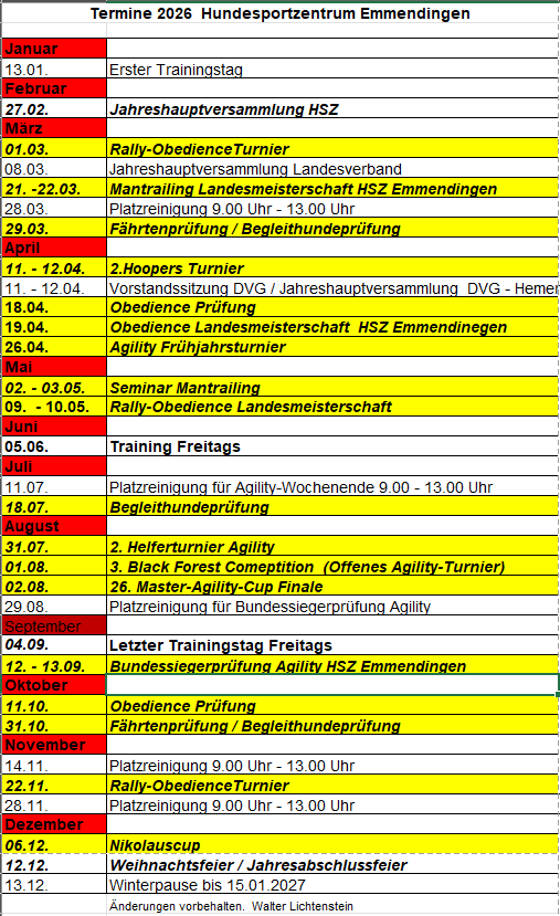 Termine des HSZE 2026
